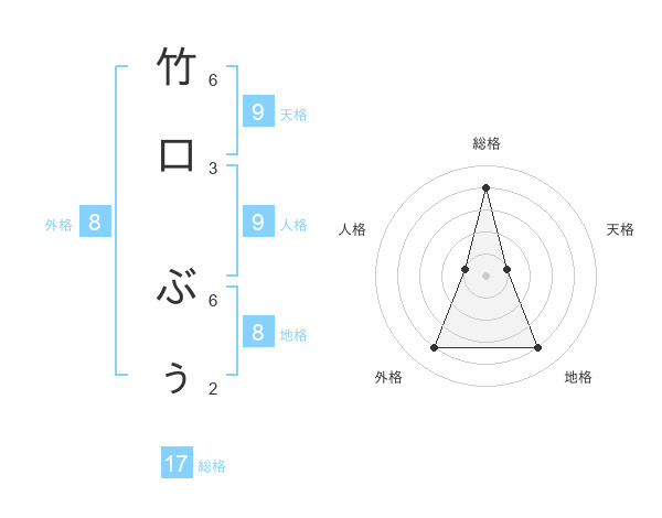 竹口 ぶぅさんの総格は17画の4点!