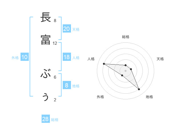 長富 ぶぅさんの天格は20画の1点!