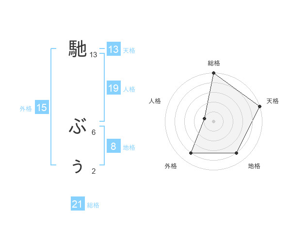 馳 ぶぅさんの総格は21画の5点!