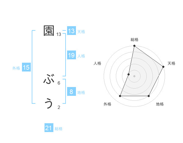 園 ぶうさんの天格は13画の5点!