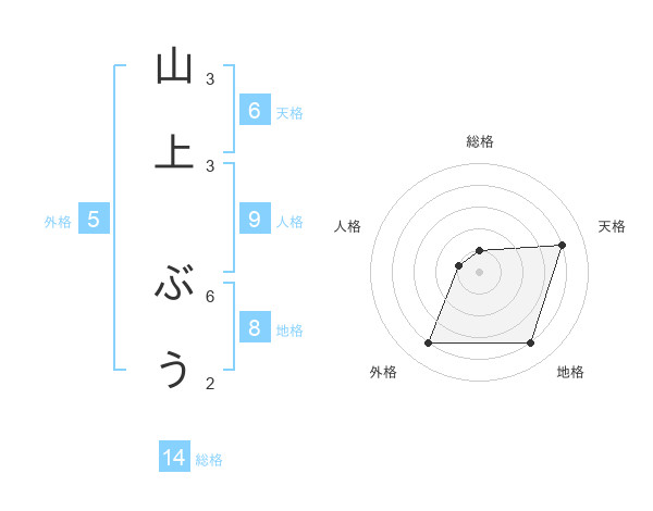 山上 ぶうさんを姓名の画数から五運を鑑定