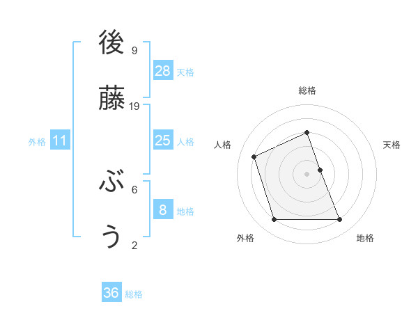 後藤 ぶうさんを姓名の画数から五運を鑑定