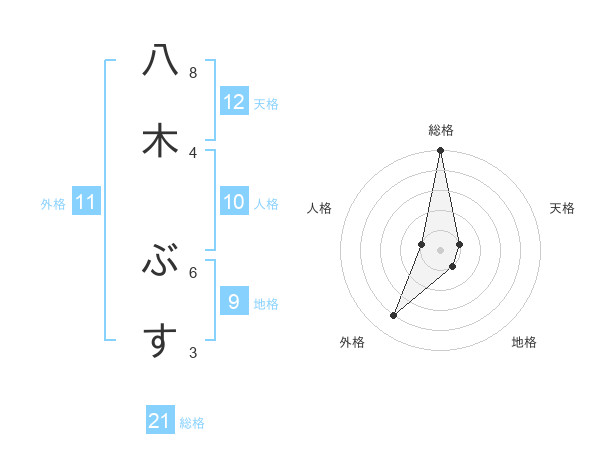 八木 ぶすさんの総格は21画の5点!