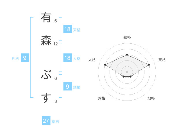 有森 ぶすさんの天格は18画の4点!