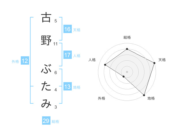 古野 ぶたみさんを姓名の画数から五運を鑑定