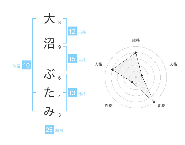 大沼 ぶたみさんの地格は13画の5点