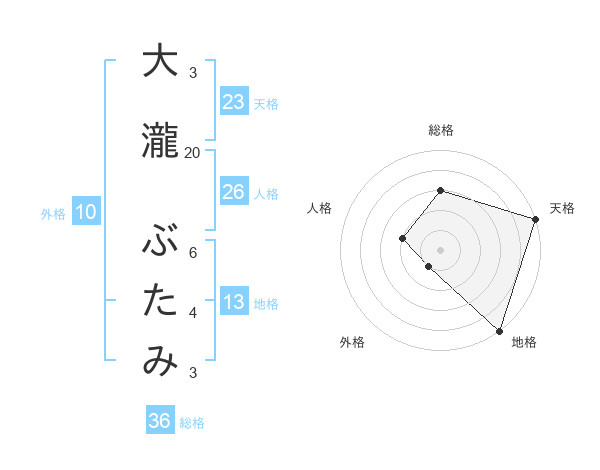 大瀧 ぶたみさんを姓名の画数から五運を鑑定