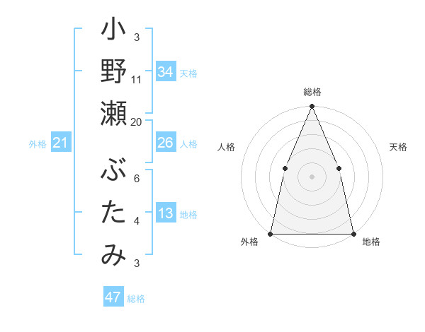 小野瀬 ぶたみさんを姓名の画数から五運を鑑定