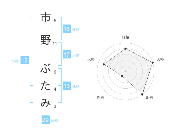 市野 ぶたみさんを姓名の画数から五運を鑑定