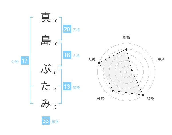 真島 ぶたみさんを姓名の画数から五運を鑑定