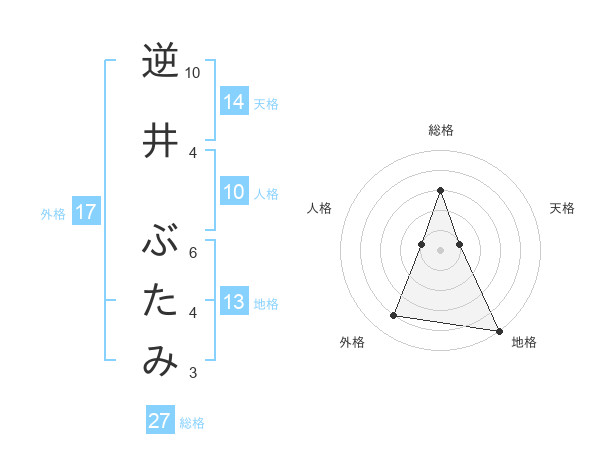 逆井 ぶたみさんの総格は27画の3点!
