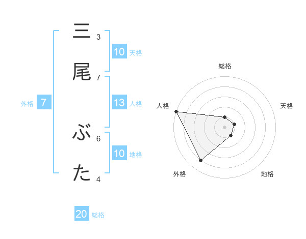 三尾 ぶたさんの総格は20画の1点!