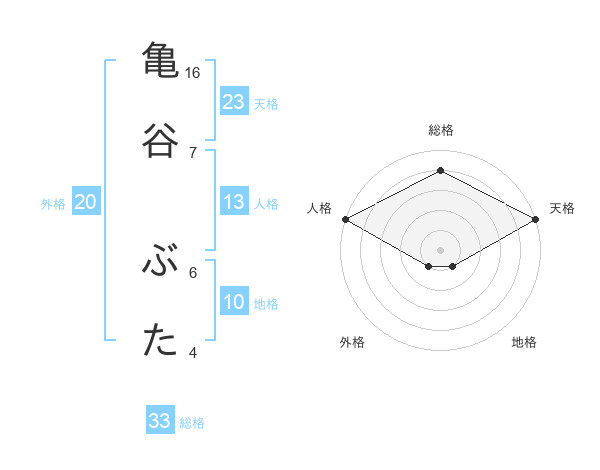 亀谷 ぶたさんの天格は23画の5点!