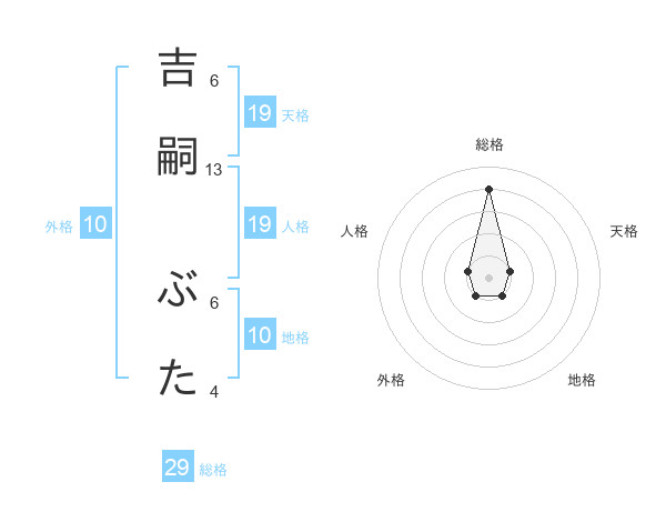 吉嗣 ぶたさんを姓名の画数から五運を鑑定