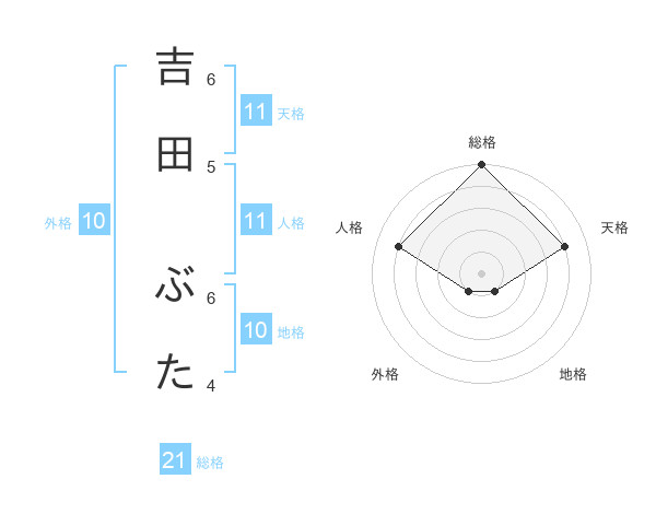 吉田 ぶたさんを姓名の画数から五運を鑑定
