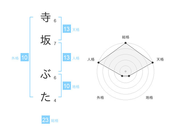 寺坂 ぶたさんの天格は13画の5点!