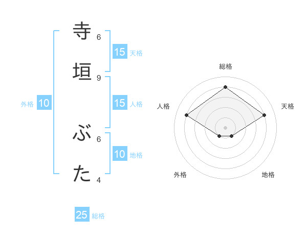 寺垣 ぶたさんの総格は25画の4点!