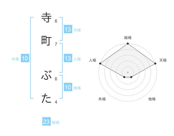 寺町 ぶたさんを姓名の画数から五運を鑑定