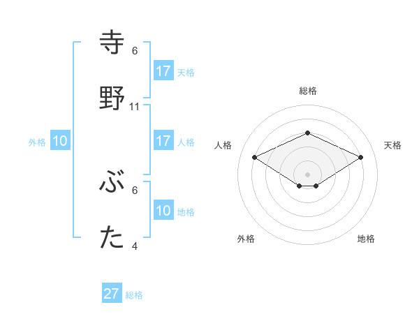寺野 ぶたさんを姓名の画数から五運を鑑定
