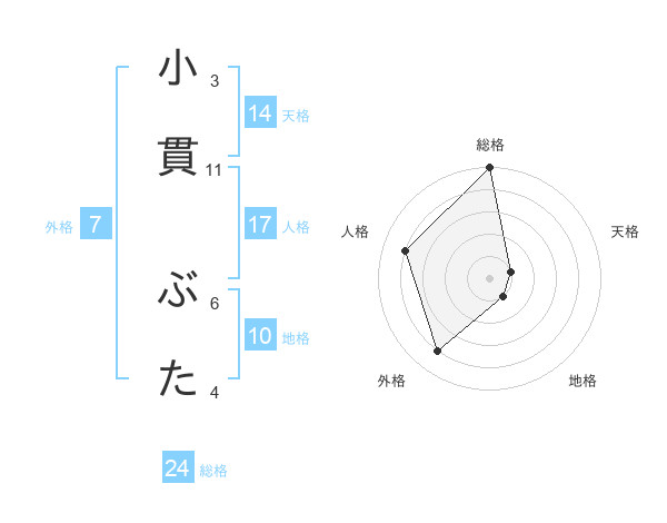 小貫 ぶたさんを姓名の画数から五運を鑑定