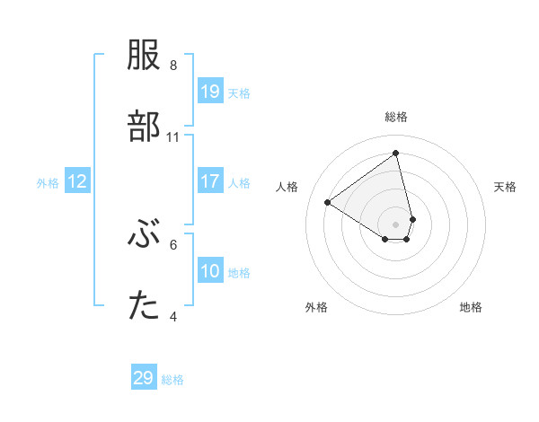 服部 ぶたさんの総格は29画の4点!