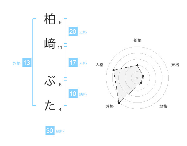 柏﨑 ぶたさんを姓名の画数から五運を鑑定