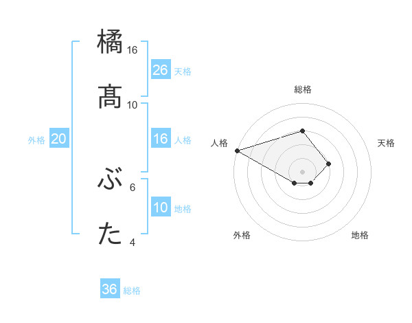 橘髙 ぶたさんの人格は16画の5点!