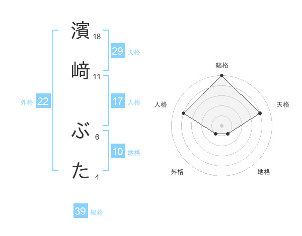 濱﨑 ぶたさんを姓名の画数から五運を鑑定