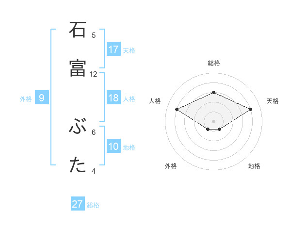 石富 ぶたさんの総格は27画の3点!