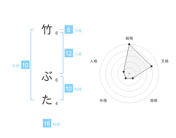 竹 ぶたさんの総格は16画の5点!