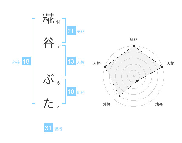 糀谷 ぶたさんを姓名の画数から五運を鑑定