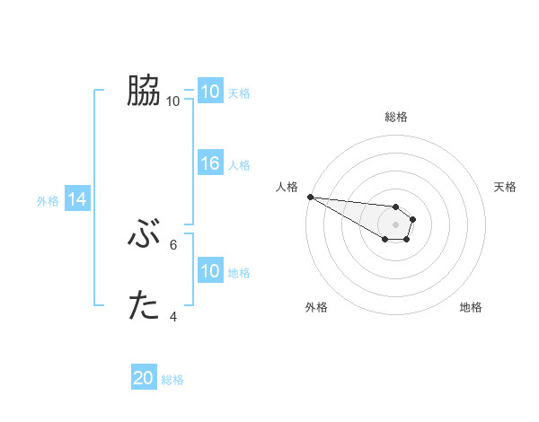 脇 ぶたさんの総格は20画の1点!