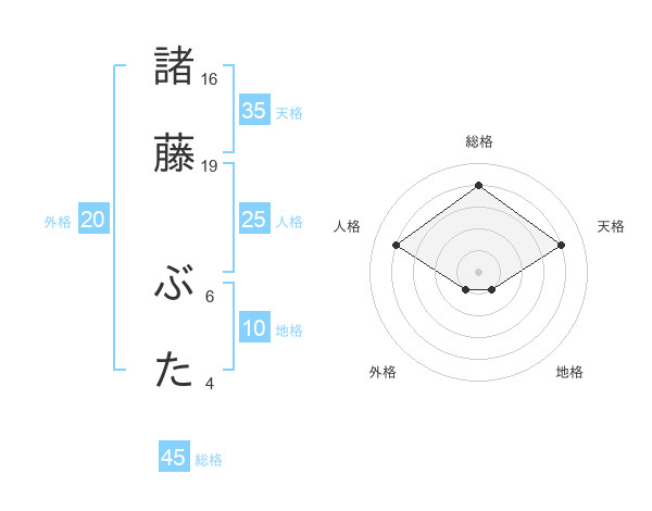 諸藤 ぶたさんの総格は45画の4点!