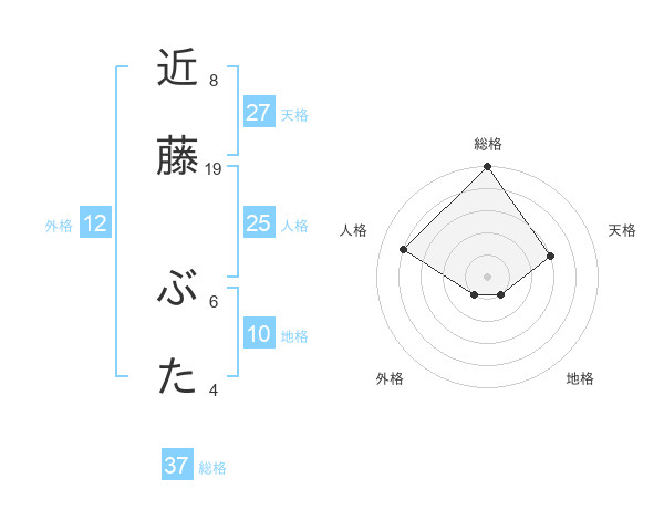 近藤 ぶたさんの総格は37画の5点!