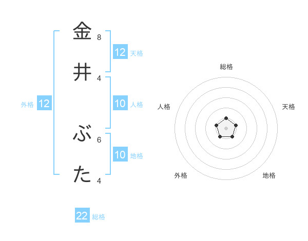 金井 ぶたさんの総格は22画の1点!