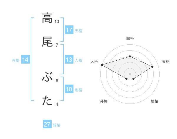 高尾 ぶたさんの総格は27画の3点!