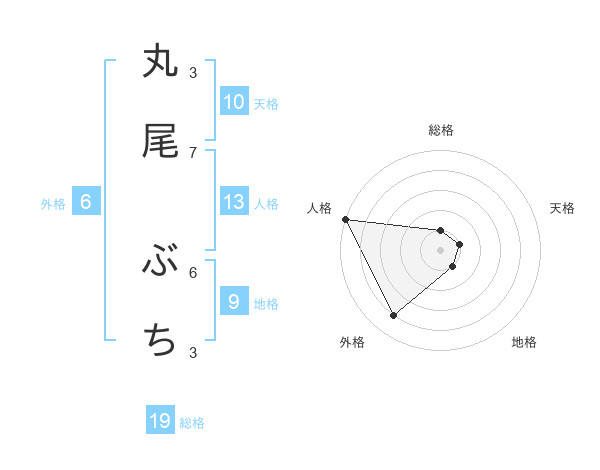 丸尾 ぶちさんを姓名の画数から五運を鑑定
