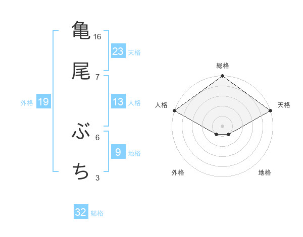 亀尾 ぶちさんの天格は23画の5点!