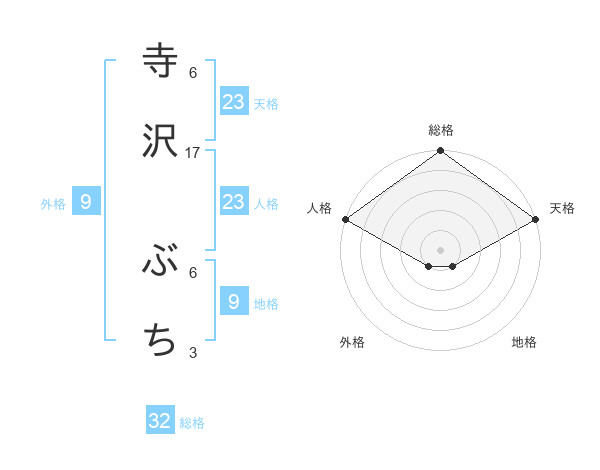 寺沢 ぶちさんの総格は32画の5点!