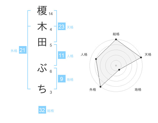 榎木田 ぶちさんの総格は32画の5点!