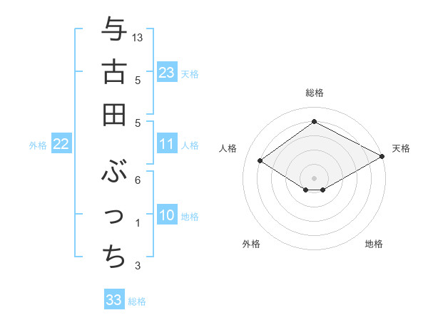 与古田 ぶっちさんを姓名の画数から五運を鑑定