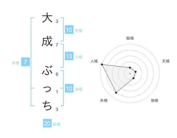 大成 ぶっちさんを姓名の画数から五運を鑑定