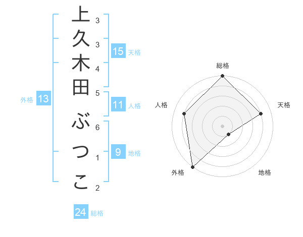 上久木田 ぶつこさんを姓名の画数から五運を鑑定