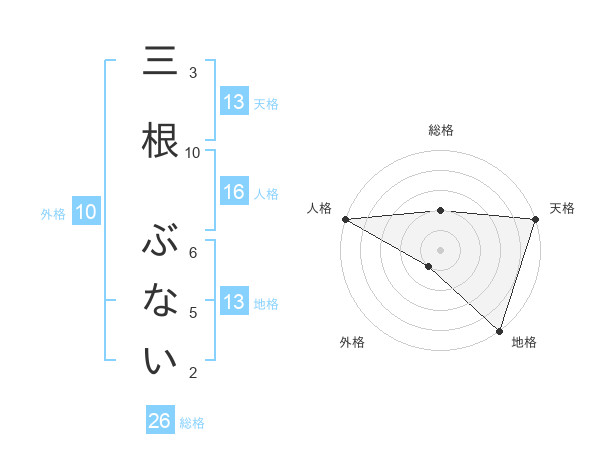 三根 ぶないさんを姓名の画数から五運を鑑定