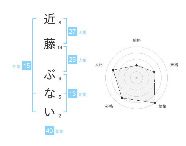 近藤 ぶないさんを姓名の画数から五運を鑑定