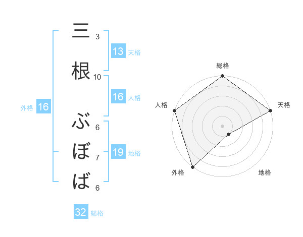 三根 ぶぼばさんを姓名の画数から五運を鑑定