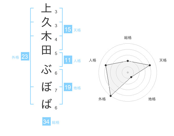 上久木田 ぶぼばさんを姓名の画数から五運を鑑定