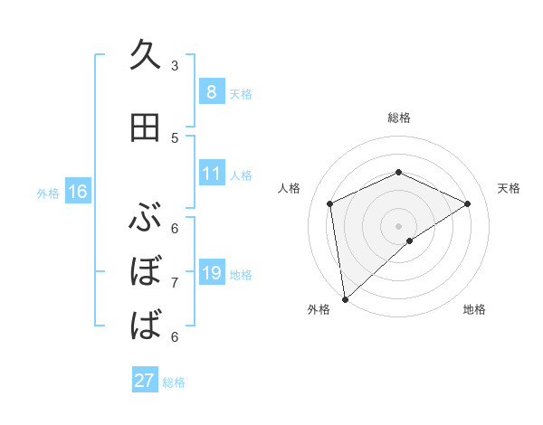 久田 ぶぼばさんを姓名の画数から五運を鑑定