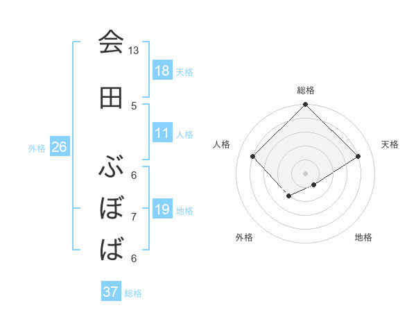 会田 ぶぼばさんを姓名の画数から五運を鑑定