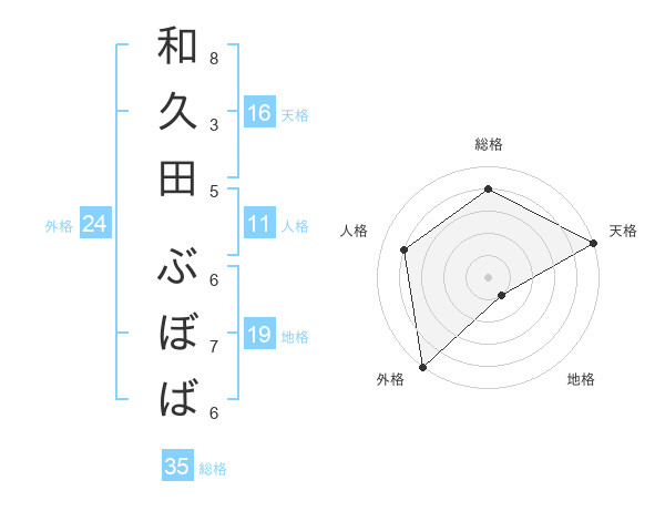 和久田 ぶぼばさんを姓名の画数から五運を鑑定